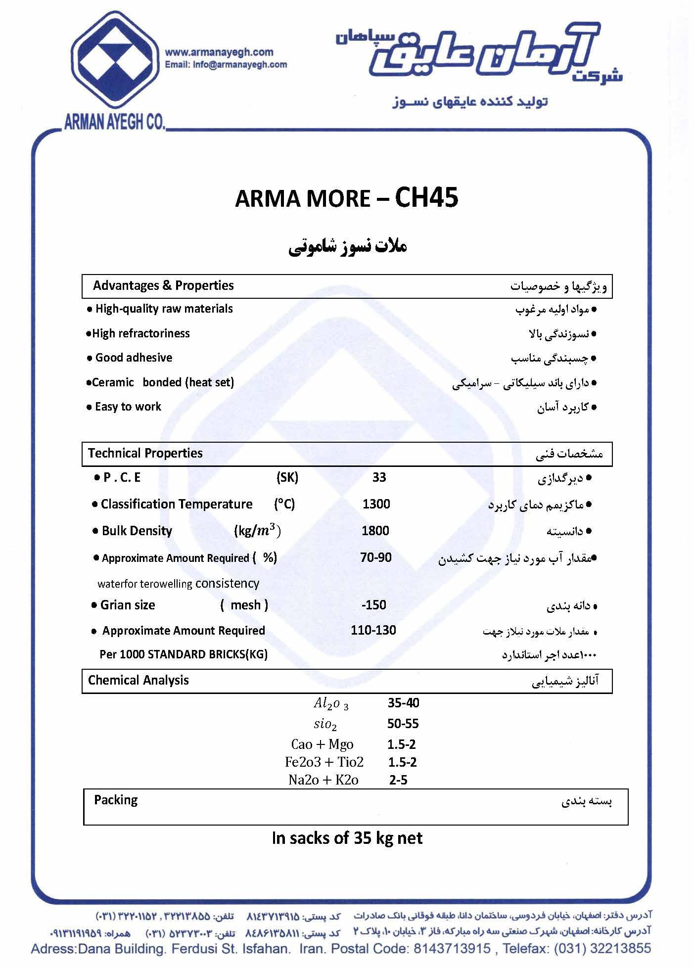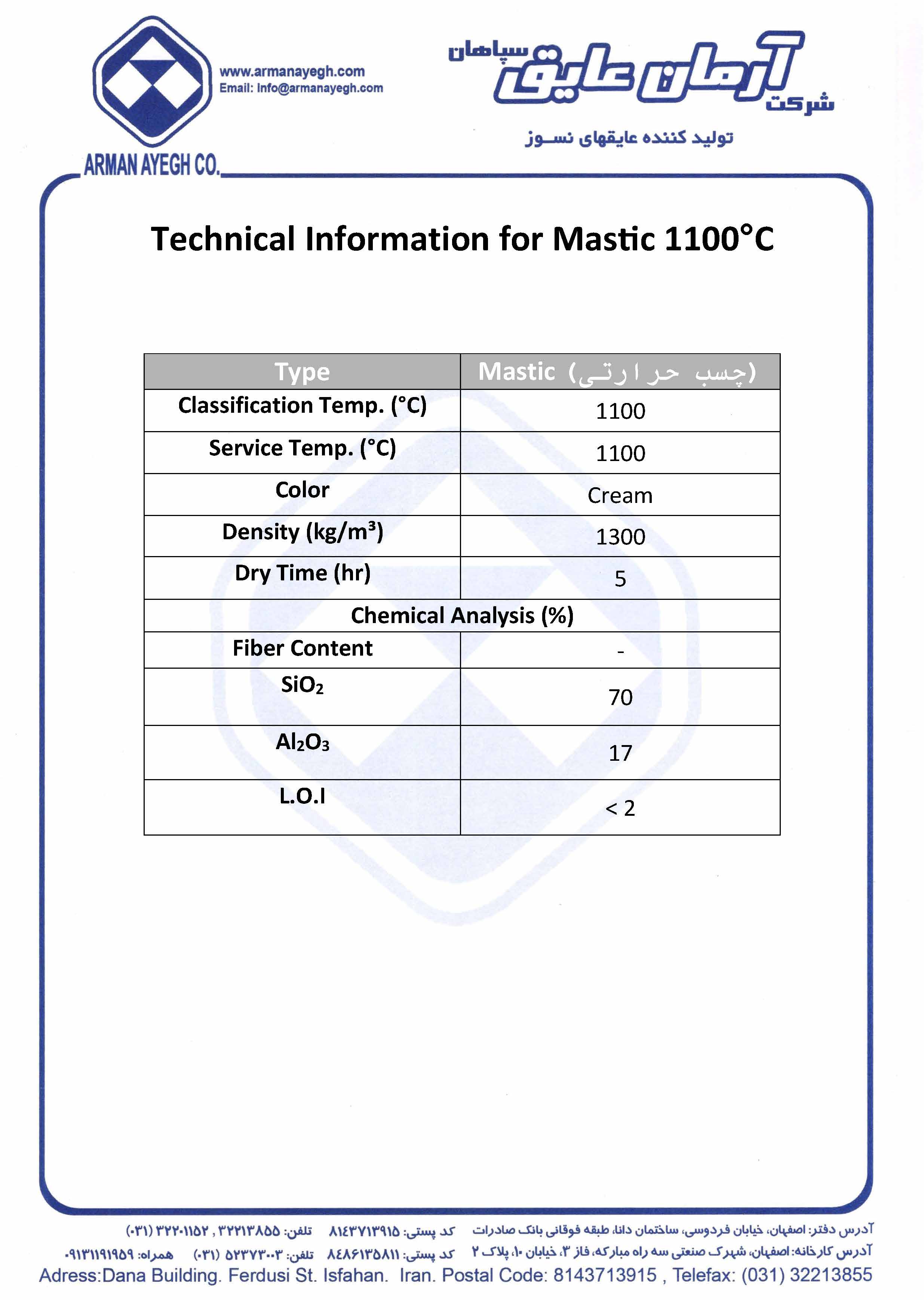 ملات های نسوز شاموتی بصورت پودر خشک عرضه و تا دمای 1200 درجه برای چیدمان آجرهای نسوز و عایق کاربرد دارد. چسب های نسوز (ماستیک) گرید 1100 درجه، برای چسباندن فوری قطعات سرامیکی و آجرهای نسوز قابل استفاده می باشد.