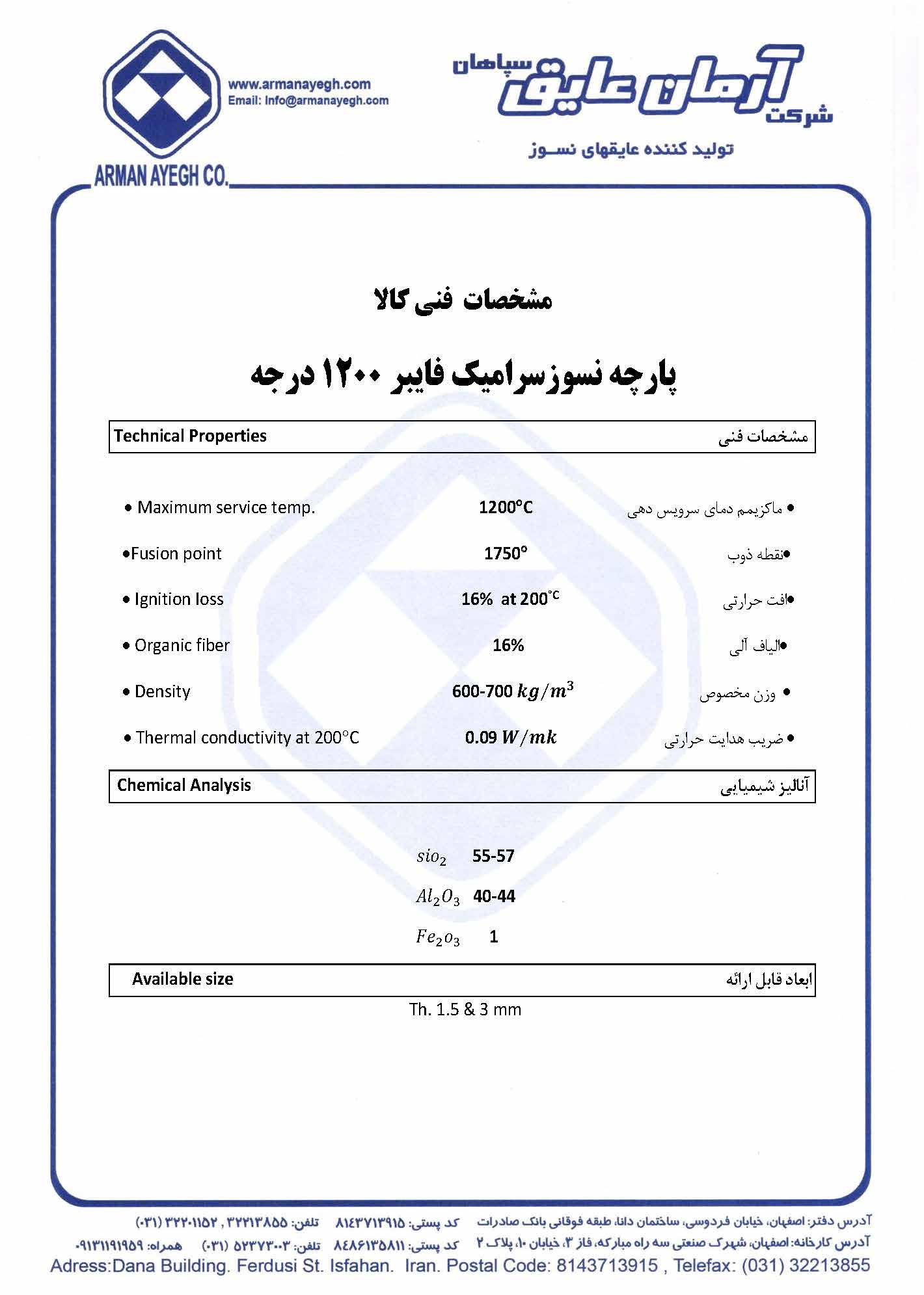 سرامیک فایبر (رده دمایی ۱۲۰۰درجه)