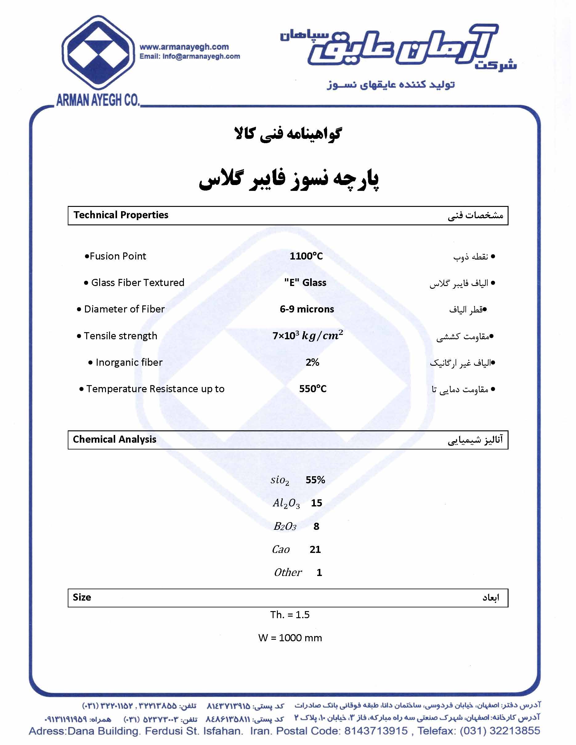 فایبرگلاس (رده دمایی ۶۰۰درجه)